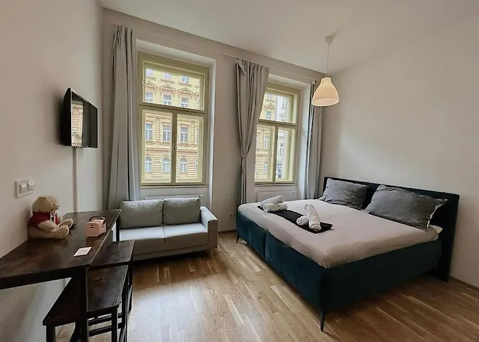 A Prága II. E körzetben elhelyezkedő Apt Near Muzeum Prague 1 Apartman apartman városra néző kilátással rendelkezik. Ez szálláshely Prága városában van, 2 km-re a Petřín-kilátó és 2,1 km-re az Orloj területétől.